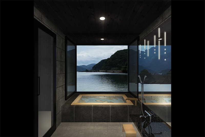 三田浜の海を、まるで自分だけのもののように眺められる——オーシャンビューの客室です。全3棟。